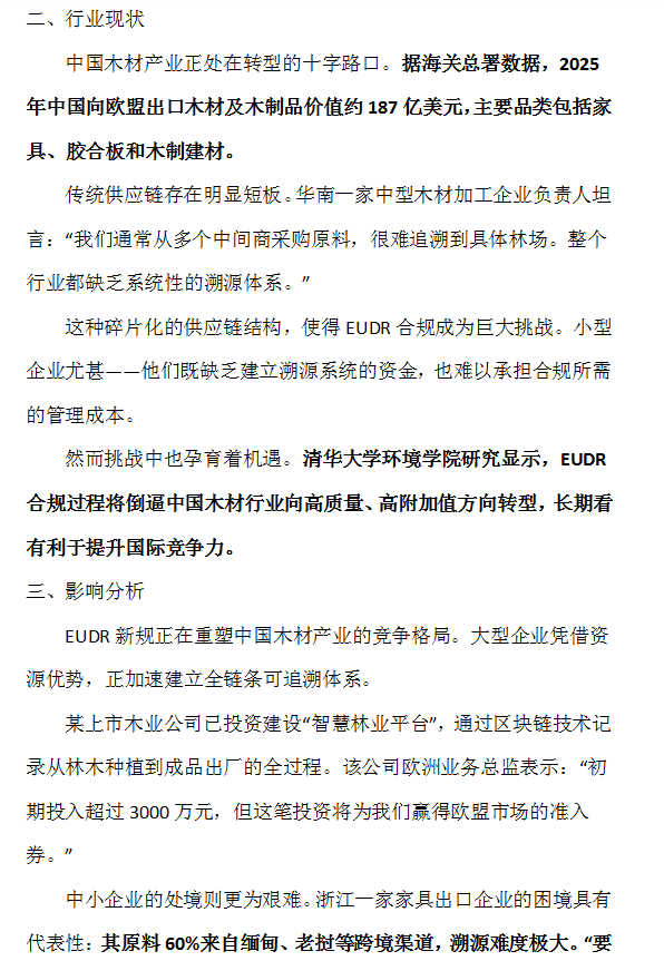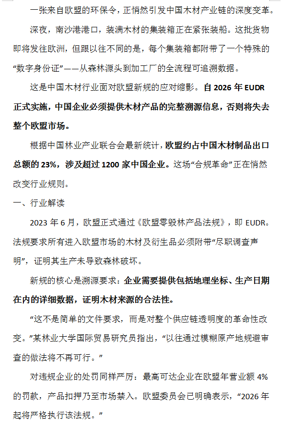 行業(yè)資訊丨中國木材行業(yè)迎來“合規(guī)風(fēng)暴”:EUDR新規(guī)如何重塑未來五年市場格局?(2026-2030)