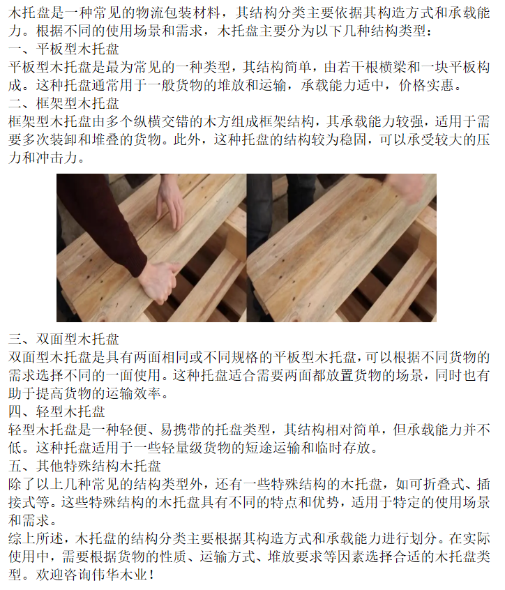 主要生產(chǎn)制造國際通用的國標、歐標、美標木托盤出口訂單業(yè)務,目前已與央企-招商路凱,玫德集團等國內(nèi)知名企業(yè)取得長期的戰(zhàn)略合作伙伴關(guān)系。公司是一家注重企業(yè)品牌建沒,綜合實力較強的木質(zhì)托盤、包裝箱生產(chǎn)企業(yè)。